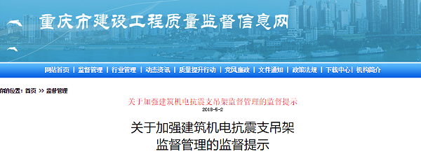二、重庆抗震支架,重庆市建设工程质量监督2018年5月份发布《关于加强建筑机电抗震支吊架监督管理的监督提示》